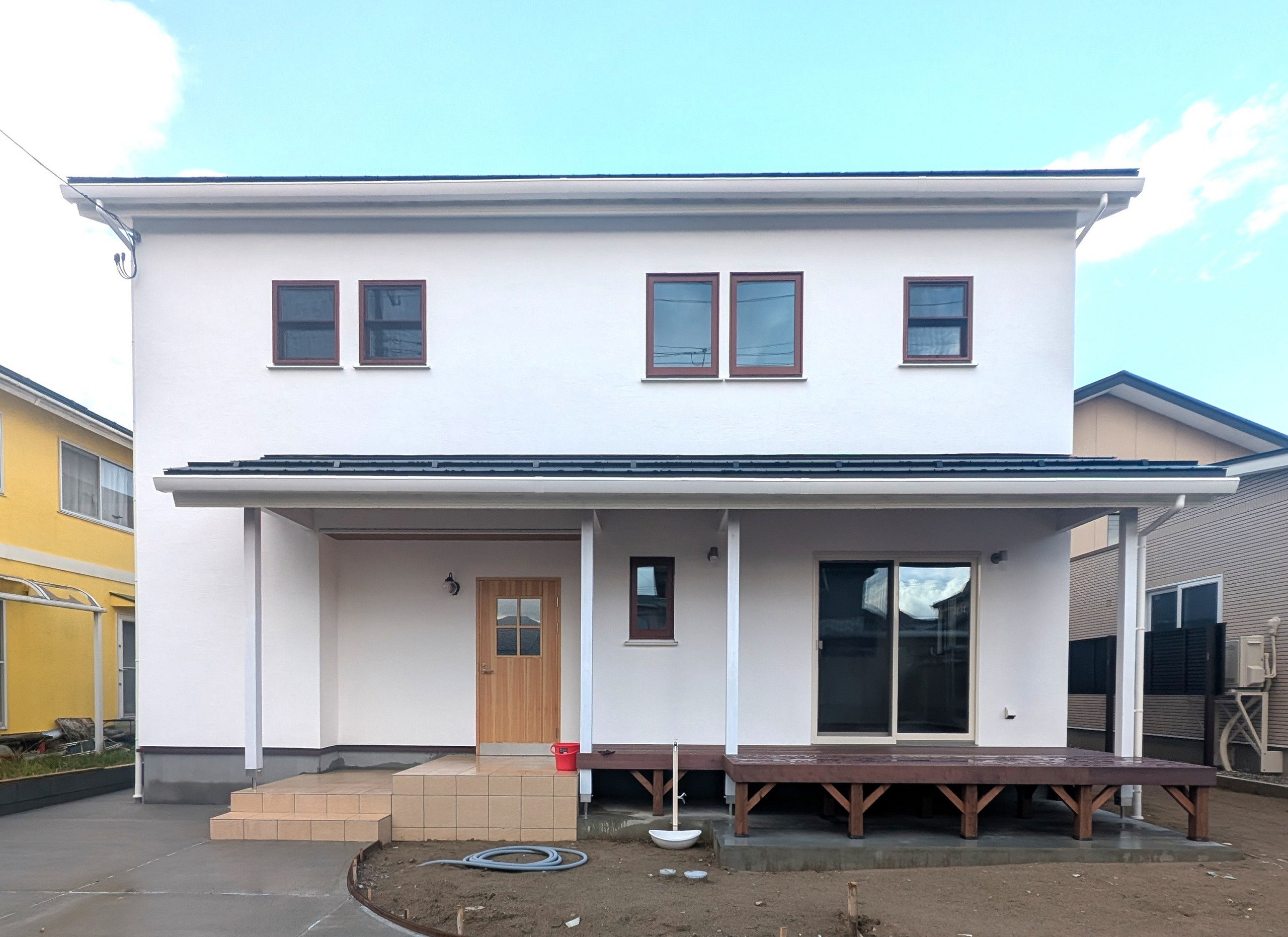 2Fに見えるレッド色、1Fのホワイト色 掃き出しなど