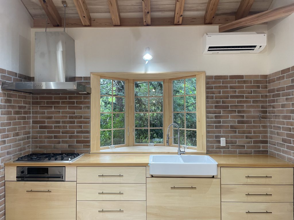 キッチン部の窓も、同様にケースメントを繋げて出窓に仕上げています。