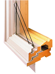 木枠を樹脂で覆うことで、フレームの中が中空になりません。アルミの1/1250の熱伝導率と断熱性能に優れた木製フレームにより、熱橋、結露を防ぐことが可能です。またフレームの木製部分は耐久性を高めるために撥水防腐処理が施されています。
