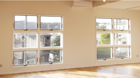 専用部材を使用した連窓が可能です。幅、高さを組み合わせて他にはないオリジナルのサッシにすることができます。