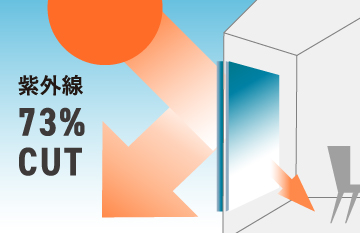 Low-Eコーティング+アルゴンガス層が日射熱をカットし、冷房効果を高めます。紫外線を84〜73%カット。日射進入率は0.43%(TWダブルハング)。通常のペアガラスに比べ41%の省エネ効果を見込めます、また、大切な家具やカーテンを日焼けから守ります。